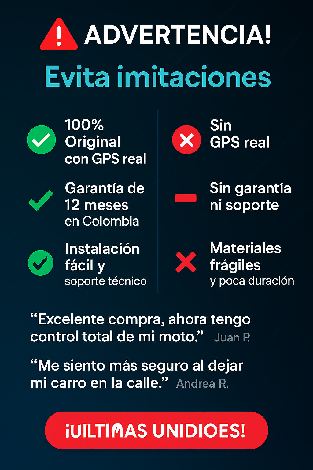 antes vivía con miedo que me robaran mi moto pero con este producto ahora duermo tranquila
